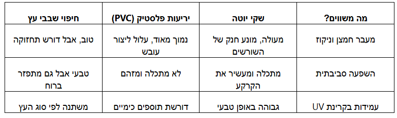 לפני שבוחרים את שיטת העבודה בגינה, כדאי להשוות בין השימוש בבד יוטה לבין פתרונות סינתטיים נפוצים אחרים שקיימים בשוק: