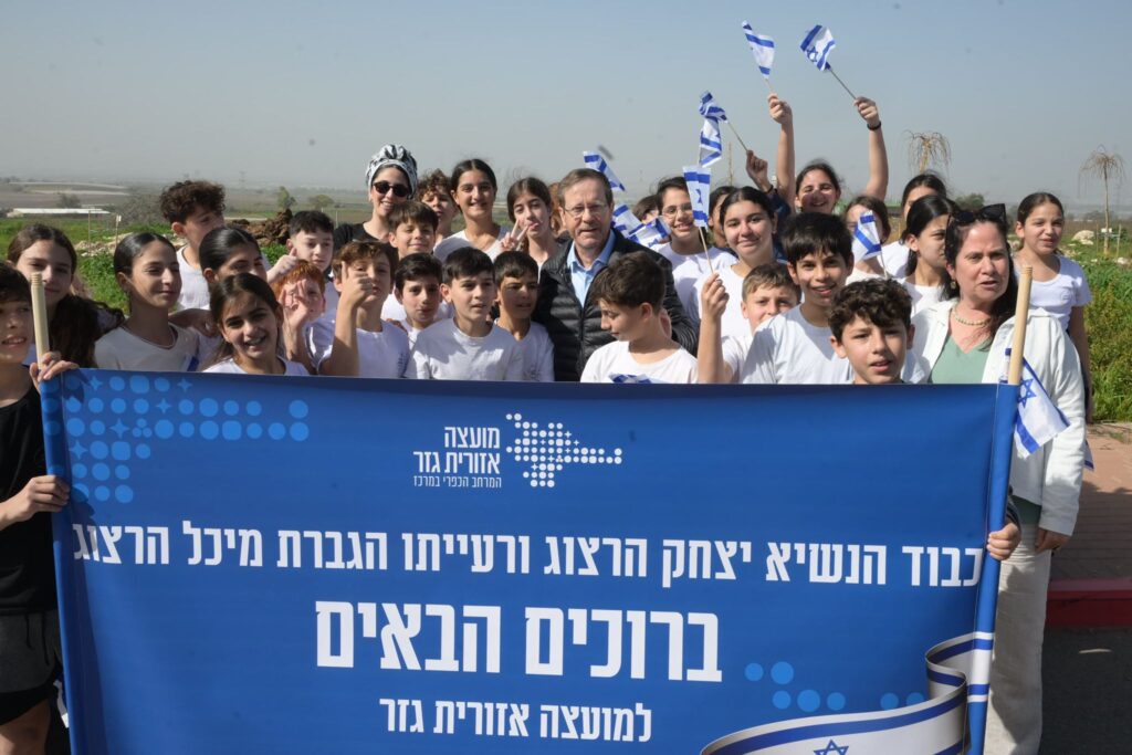 בהמשך המשיך הנשיא לביקור במועצה האזורית גזר בליווי ראשת המועצה, רותם ידלין. תחילה ביקר בגן הלאומי תל גזר, שם קיבל סקירה על מרחבי המועצה.